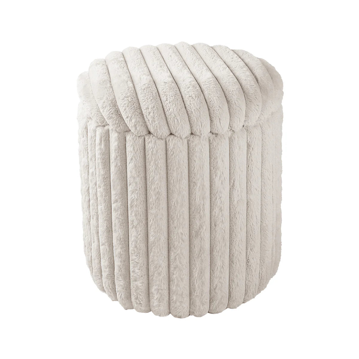 The rabbit fur stool adds both comfort and glamour to any makeup or dressing table setup.